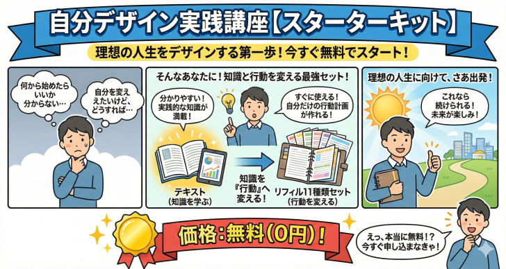 ※受講対象:無料スターターキットを受講された方「わかる」を「できる」に変える。人生をデザインする技術。