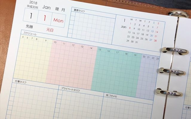 【音声配信】リフィルの概要 時間帯に合わせて4つのカラーを配置 スケジュール記入欄に4色のカラーを配置しました。この4色 … 続きを読む 【2026年1月始まり】1日1ページシステム手帳リフィル【A5】ColorTime Daily Horizontal 自作エクセル