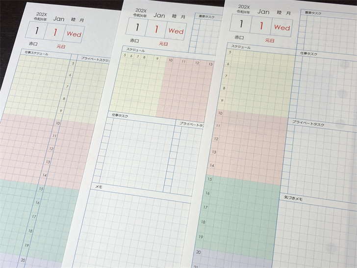 選ぶときは、まず自分の1日の活動時間を確認してください。例えば、6時から22時まで動くことが多いなら、その時間帯が入るフォーマットが使いやすいです。