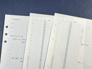 | Q.自分で手帳リフィルを作ろうと思ったきっかけは何ですか? 自宅で末期がんの義父の介護をしています。体調を記録し往診医に見せています。テーブルに置いて記載するので、手帳形式ではなくA5を探していました。(片面A5は開くとA4になり邪魔、A5サイズの手帳は開くと記載部分が小さい) Q.手帳リフィル工房のリフィルを使ってみた感想 とても満足しています。「schedule」のところに食事や睡眠などの記録、「todo」には内服の記録、「Memo」には次回往診時の伝達事項など記載します。日記は嫌いですがこちらのフォーマットの方が私には向いているようです。他人にも見せやすいし。縦のバインダーに挟むので上部に余白があるといいなと思いました。デフォルトの印刷設定は「きれい」になっていましたが、「標準」も「早い」も遜色ないです。 |