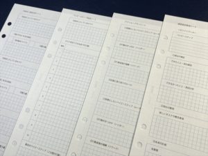 | 効率的な仕事をするために特化したリフィルです。1日1ページタイプのリフィルです。 | 達成したい夢や目標を書いて、日々の行動をチェックするためのリフィルです。 | 選択と集中を行い、自分のやりたいことを実現させるためのリフィルです。 | |||